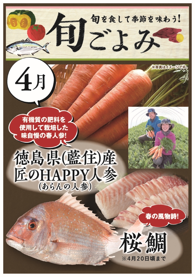 【旬ごよみ】徳島県(藍住)産匠のHAPPY人参/桜鯛